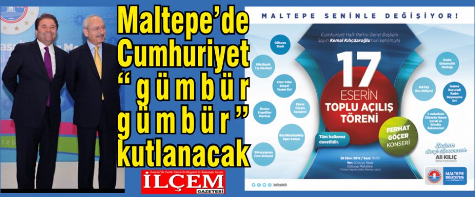 Maltepe Belediyesi, Cumhuriyet’in 93’üncü yıldönümünde, CHP Genel Başkanı Kemal Kılıçdaroğlu’nun katılacağı ve ünlü sanatçı Ferhat Göçer’in konser vereceği dev bir organizasyonla, uzun yıllardır bitirilemeyen Gülsuyu Stadı başta olmak üzere 17 eserin toplu açılışını gerçekleştirecek.