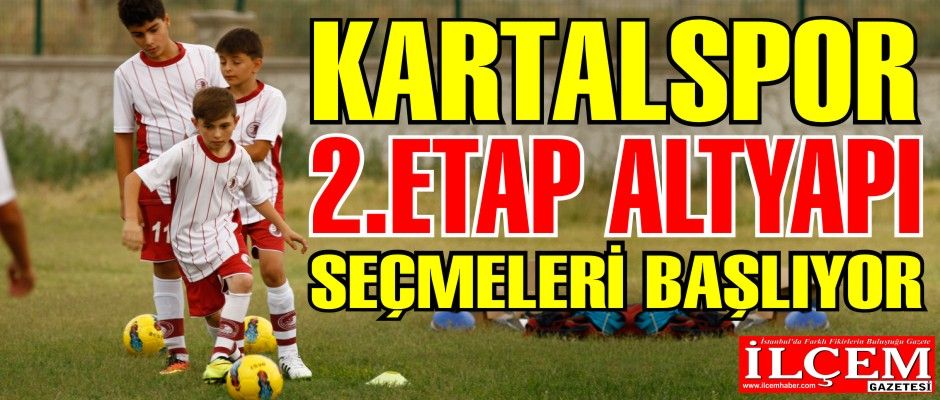 Haziran ayı içerisinde yoğun katılımla gerçekleştirdiğimiz 2015-2016 futbol sezonu Kartalspor Altyapı seçmelerinin Şehir içi ve Şehir dışından gelen yoğun istek nedeniyle 2. Etabının gerçekleştirilmesine karar verilmiş olup 2.Etap seçmeleri 17 Ağustos 2015 Pazartesi günü Kartalspor Altyapı tesislerinde başlayacaktır.